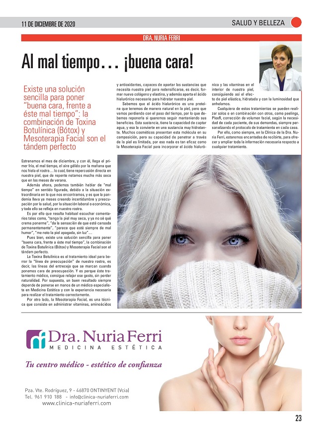Estrenamos el mes de diciembre, y con él, llega el primer frío, el mal tiempo, el aire gélido por la mañana que nos hiela el rostro… lo cual, tiene repercusión directa en nuestra piel, que de repente notamos mucho más seca que en los meses de verano.