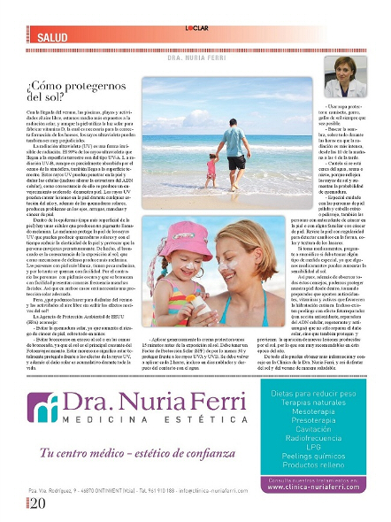 Con la llegada del verano, las piscinas, playas y actividades al aire libre, estamos mucho más expuestos a la radiación solar, y aunque la piel utiliza la luz solar para fabricar vitamina D, la cual es necesaria para la correcta formación de los huesos, los rayos ultravioleta pueden también ser muy perjudiciales.