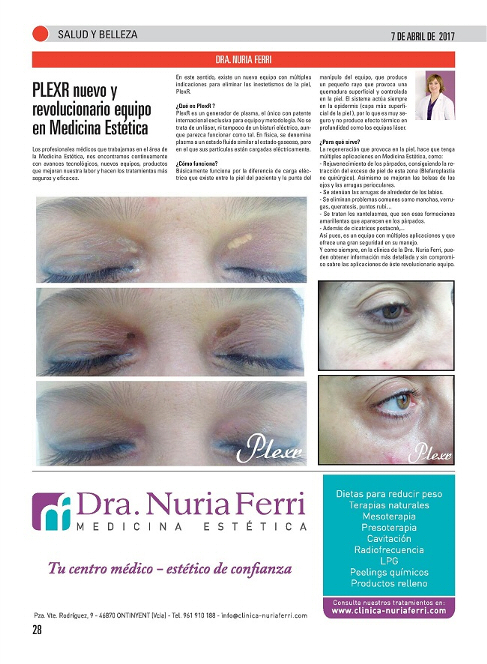PLEXR (plasmaexéresis o dispositivo de exéresis por plasma) es una herramienta para tratar de forma no quirúrgica el exceso de piel, arrugas, manchas y marcas de acné entre otros problemas estéticos, sin necesidad de pasar por quirófano.