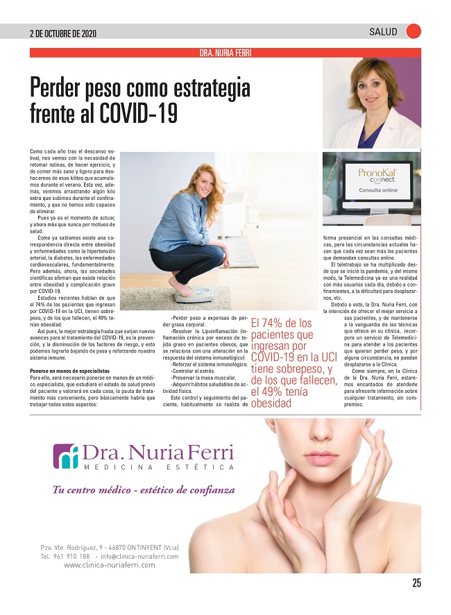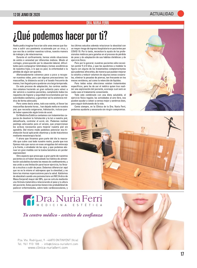 La Dra. Nuria Ferri hizo la presentación, y la delegada del laboratorio ofreció una degustación de los productos asociados al tratamiento a los asistentes. Y la prensa local publicó la noticia.
